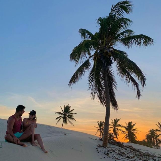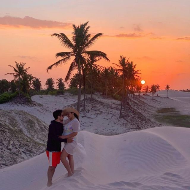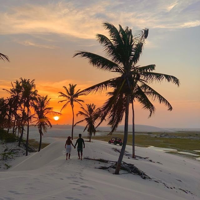 Os coqueirais soterrados pelas dunas fazem o cenário ficar ainda mais bonito e fotogênico. As lagoas de água doce são quentinhas, rasas e muito gostosas de tomar um banho.